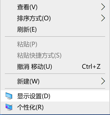 在桌面空白处右键,在弹出菜单中点选“显示设置”,如下图: