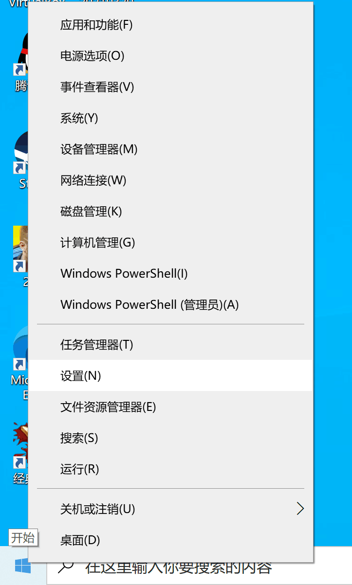 安装输入法后删除微软拼音方法,右键桌面左下角的开始图标,如下图:
